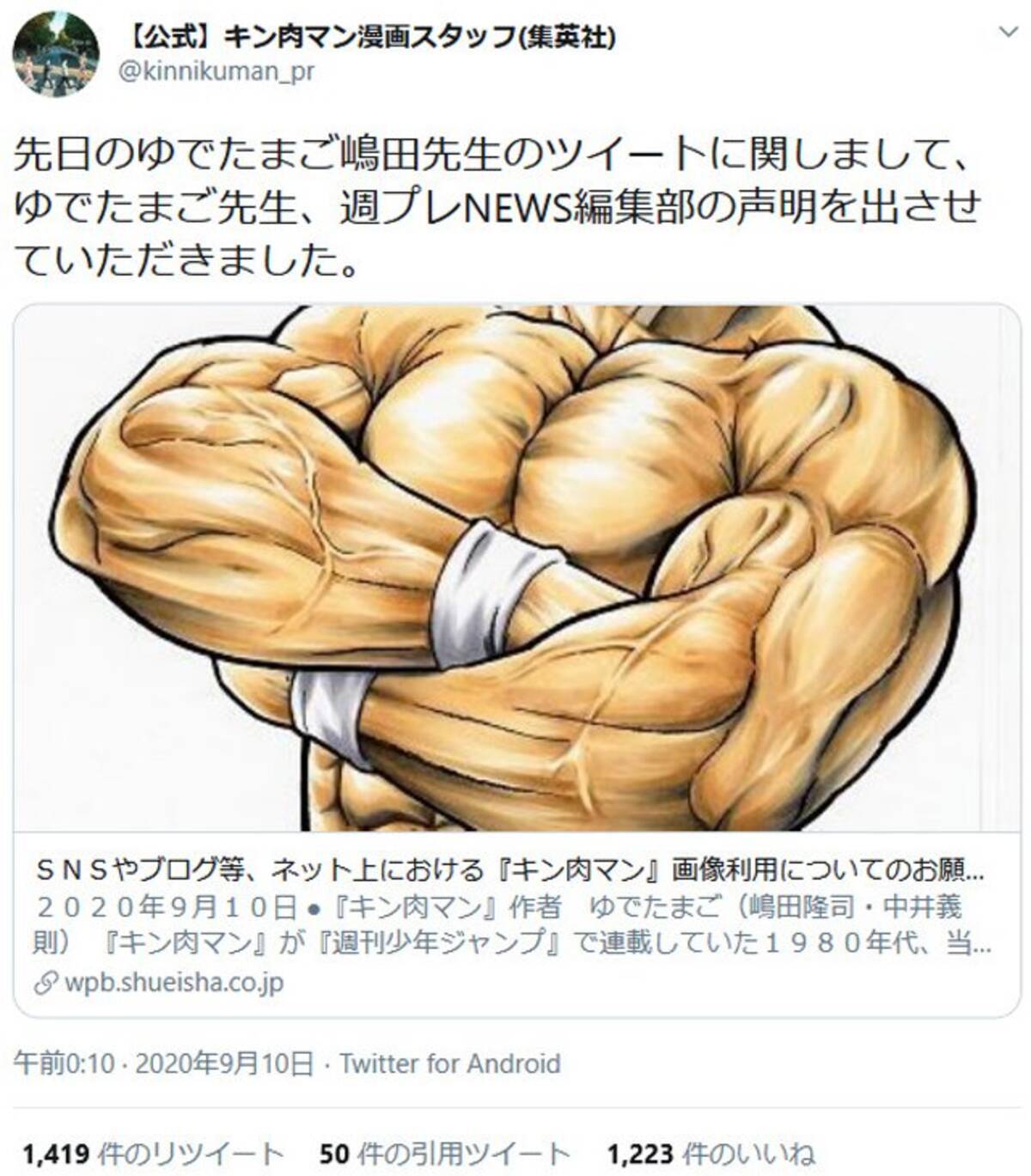 ネット上における キン肉マン 画像利用について作者と週プレnews編集部がお願いを掲載 少年ジャンプ 編集長も 同じスタンスです 2020年9月12日 エキサイトニュース