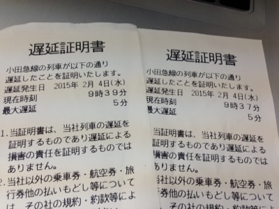 小田急線 遅延証明書 Chirfi Ykk Cww