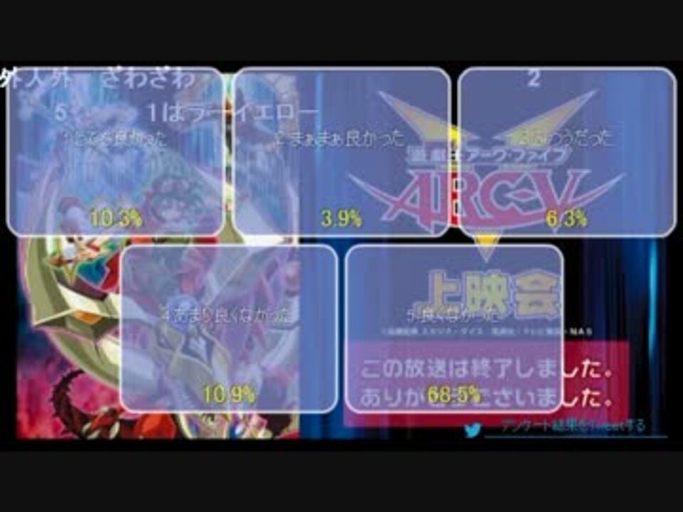 遊戯王 Arc V 最終回ニコ生アンケ とてもよかった 2 8 を記録 けもフレとどこで差がついてしまったのか はちま起稿