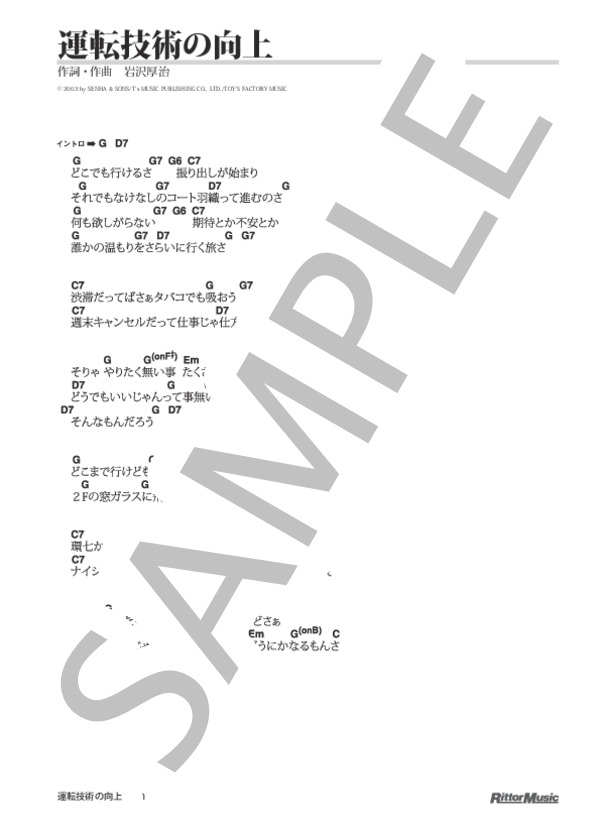 楽譜 運転技術の向上 ゆず ギター弾き語り 初級 Piascore 楽譜ストア