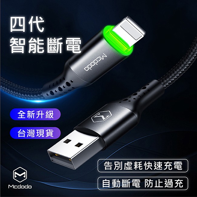麥多多mcdodo 二代智能斷電自動補電防止過充2 4a快充iphone充電線mdd 智能傳輸充電呼吸燈 蝦皮購物