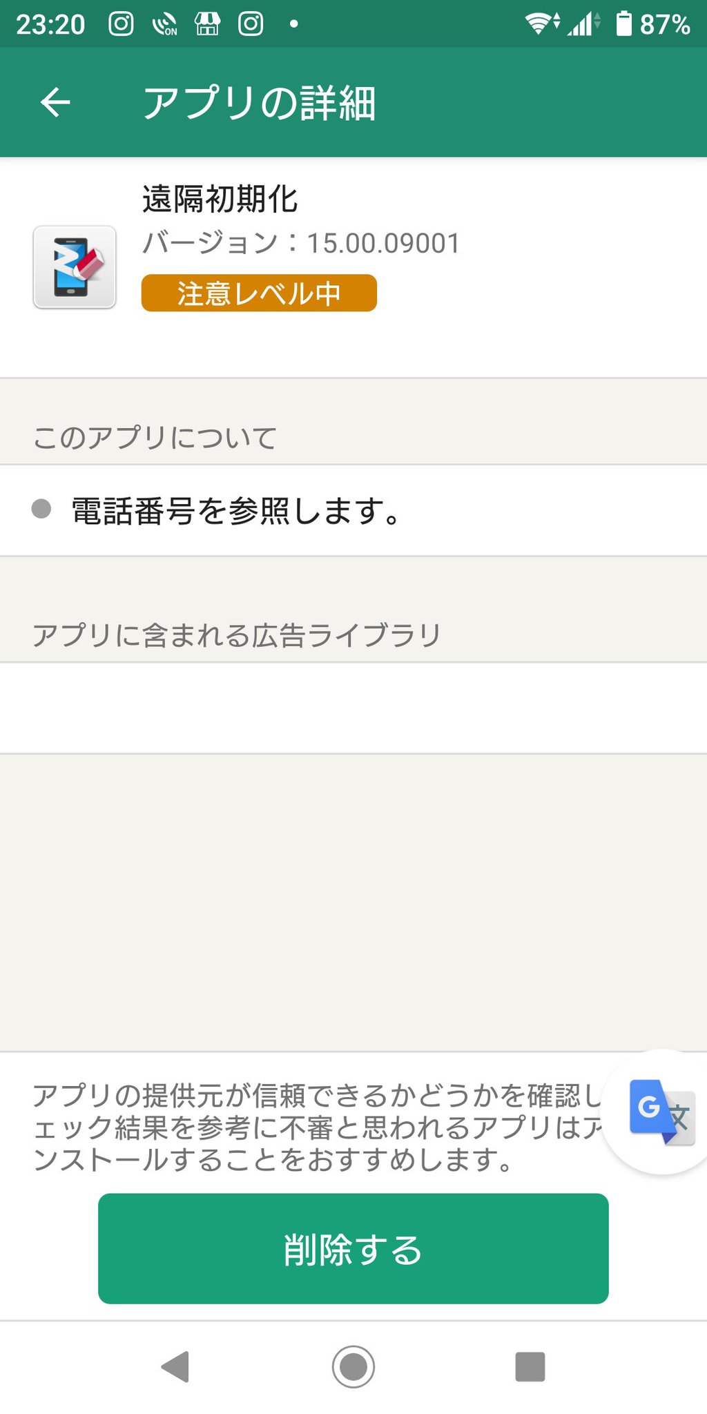 ドコモandroidの 遠隔初期化が未設定です 通知を消す方法