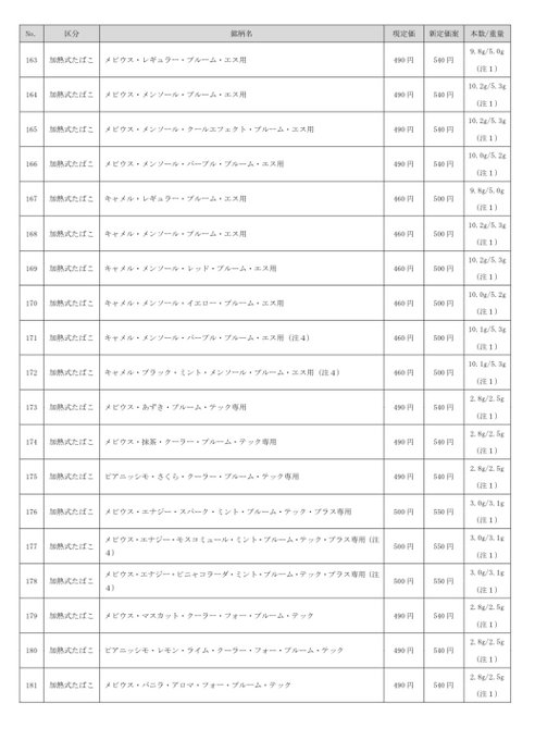 タバコショップ ハヤサキ On Twitter jt 今年10月1日 値上げ認可vol 1 Jt取扱商品 紙巻たばこ 全136銘柄 の値上げ 認可されました 詳細は添付の通りです 紙巻 代表的な銘柄 メビウス セブンスター ピース ピアニッシモ