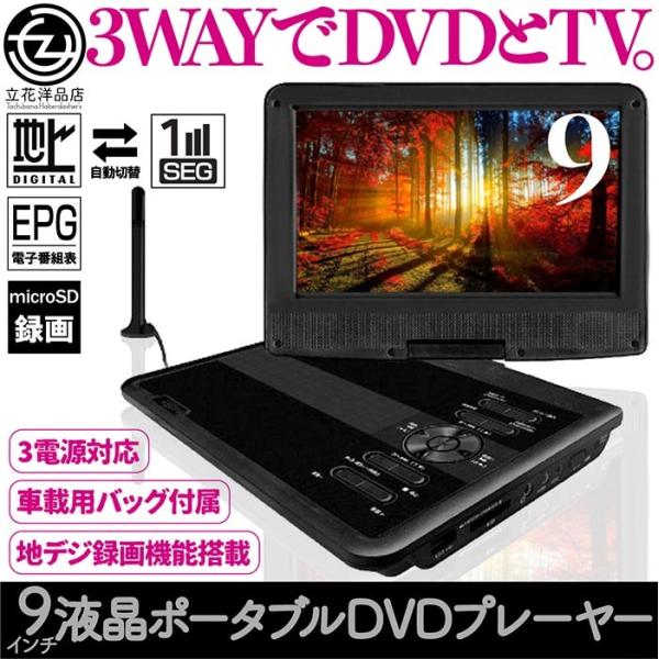 ポータブルdvdプレーヤー 9インチ 3電源対応 内蔵バッテリー 地デジ録画機能搭載 地デジ ワンセグ自動切替 180 画面回転 折りたたみ 車載バッグ 付き Ot Fd90ak F Ot Fd90ak 立花洋品店 通販 Yahoo ショッピング