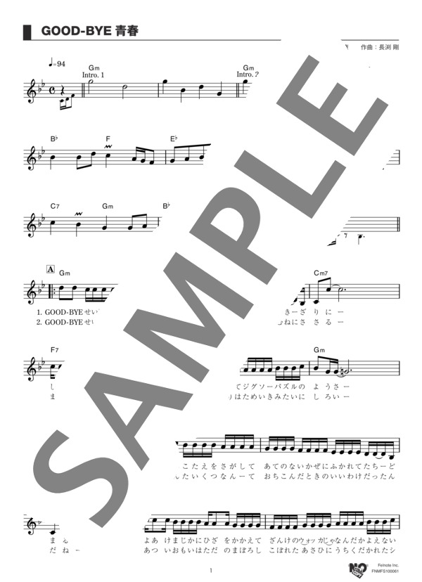 楽譜 Good Bye青春 長渕 剛 メロディ その他 Piascore 楽譜ストア