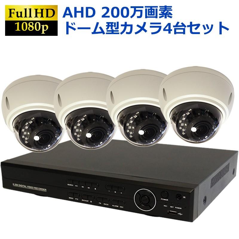 防犯カメラ 屋外 防犯カメラセット Ahd 高画質 ドームカメラ ドーム型カメラ 監視カメラ 4台セット 簡単 設置 Hdd2tb付属 10006116 防犯カメラのあんしん壱番 通販 Yahoo ショッピング