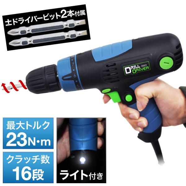 電動ドリルドライバー コード式 ドライバドリル 電動ドライバー 電動ドリル ドライバードリル ネジ締め 緩め 穴あけ 軽量 ドライバービット付属 マスダショップ 通販 Paypayモール