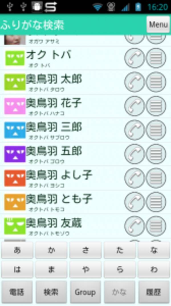 電話帳 フリック操作で一発検索 お手軽 かんたんな電話帳アプリを探している方にオススメ 無料androidアプリ オクトバ