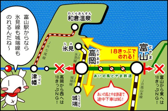 図解 青春18きっぷで北陸の乗り方 1 金沢駅から東へ進む時の特例を解説 オキラクウサギ