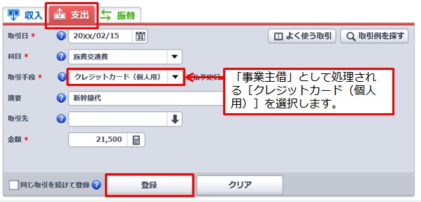 青色申告事業主がクレジットカード決済をした場合