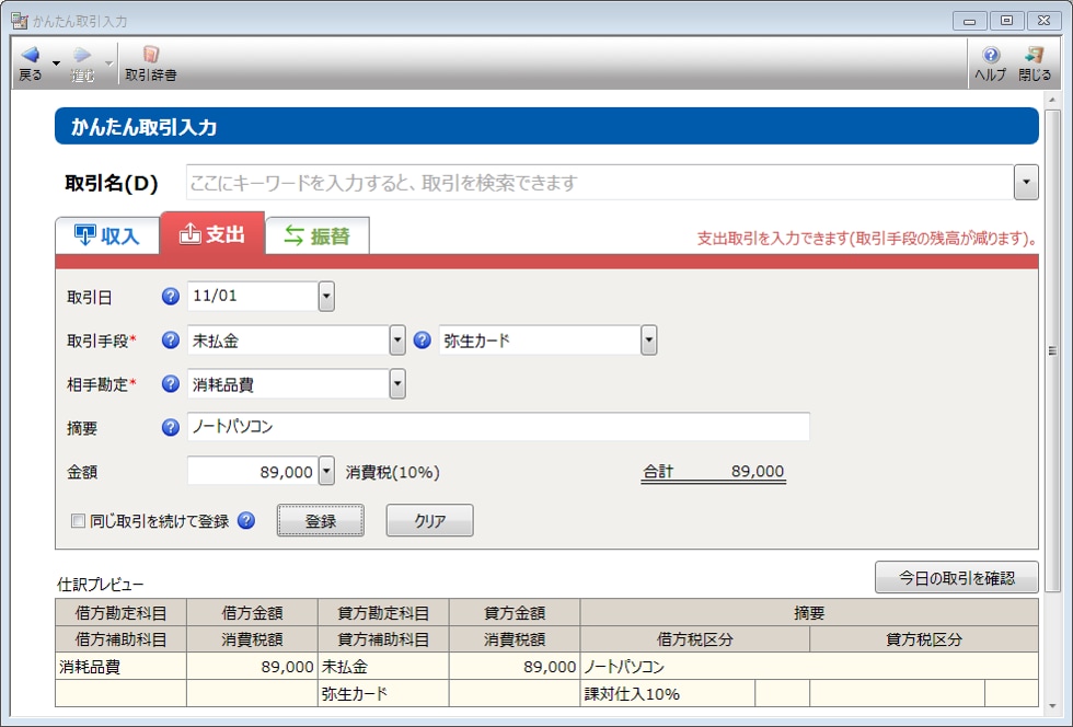 クレジットカードで支払ったとき 弥生会計 サポート情報