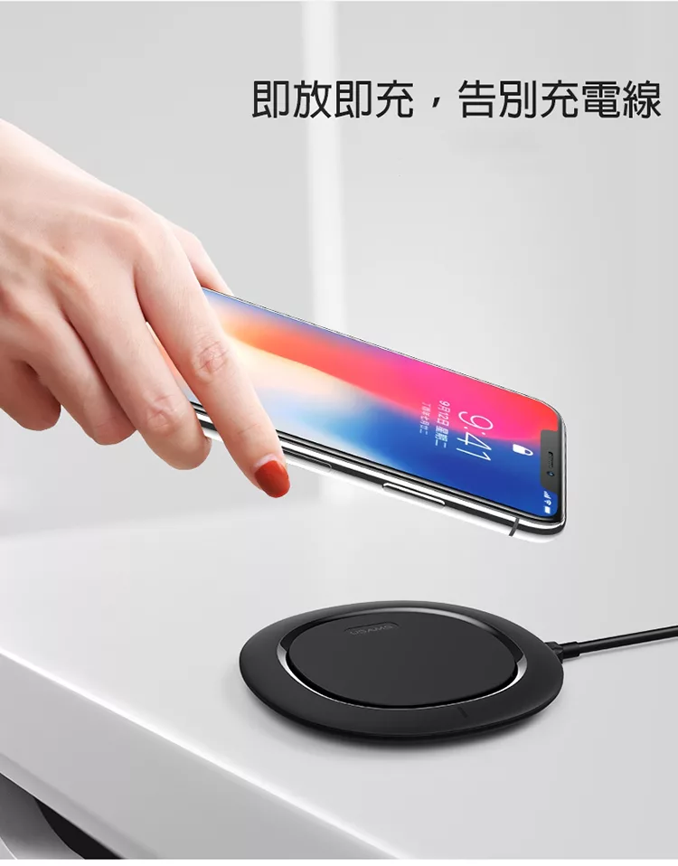 博客來 Usams 飛碟無線充電板qi無線快充充電器充電座黑色