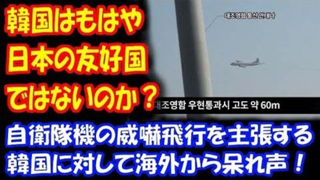 海外の反応 韓国は 日本の 友好国ではないのか 自衛隊機の 威嚇飛行を 主張する 韓国に 海外から 呆れ声 ニコニコ動画