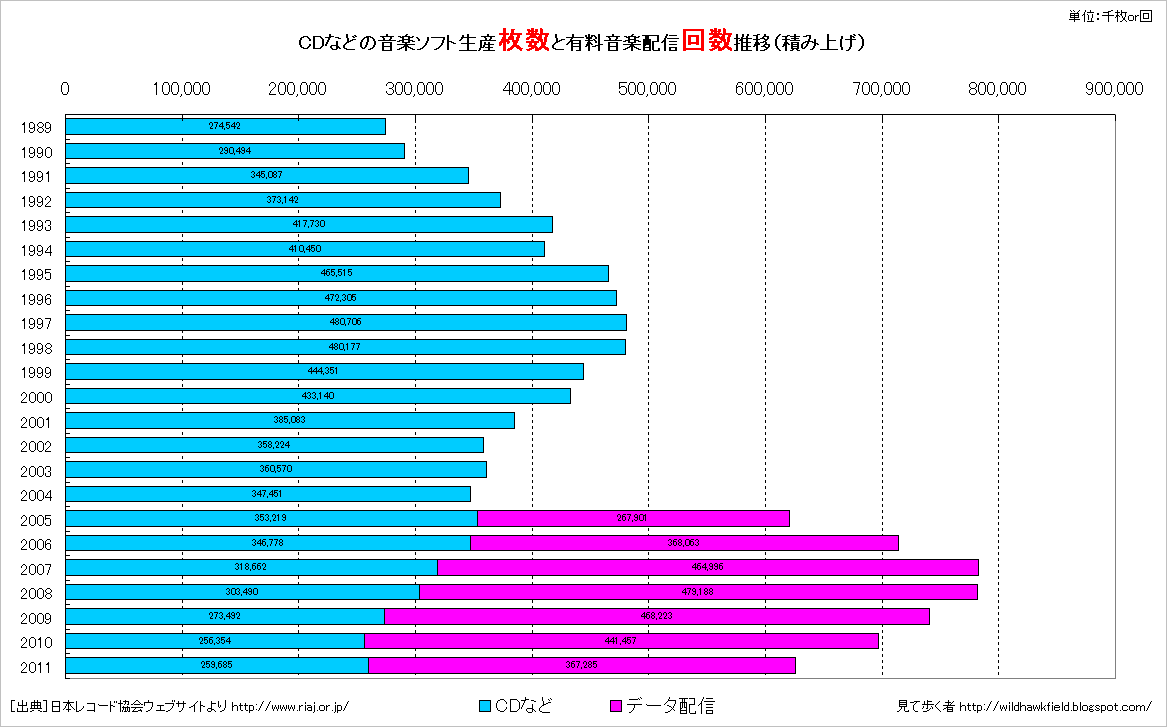違法ダウンロードが原因で売上が落ちたのであれば有償で音楽を聞く人の 数 も減っているはずなので確認してみました 見て歩く者 By 鷹野凌